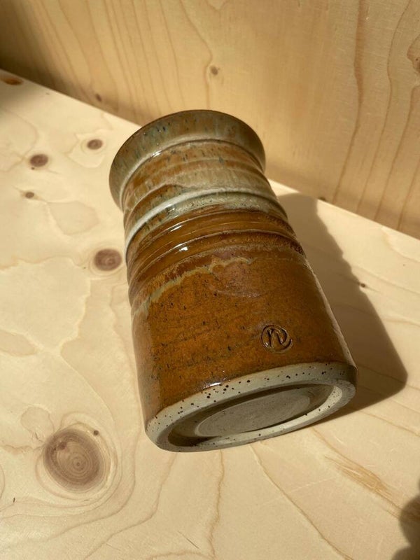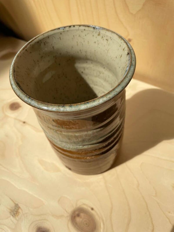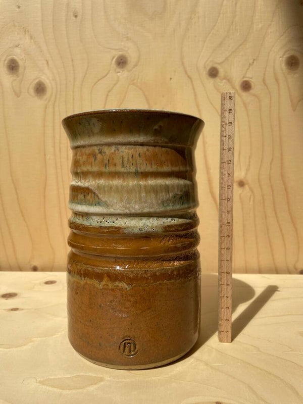 Deze vaas heb ik geglazuurd met 6 verschillende glazuren. Op deze manier is er een mooi kleurverloop.